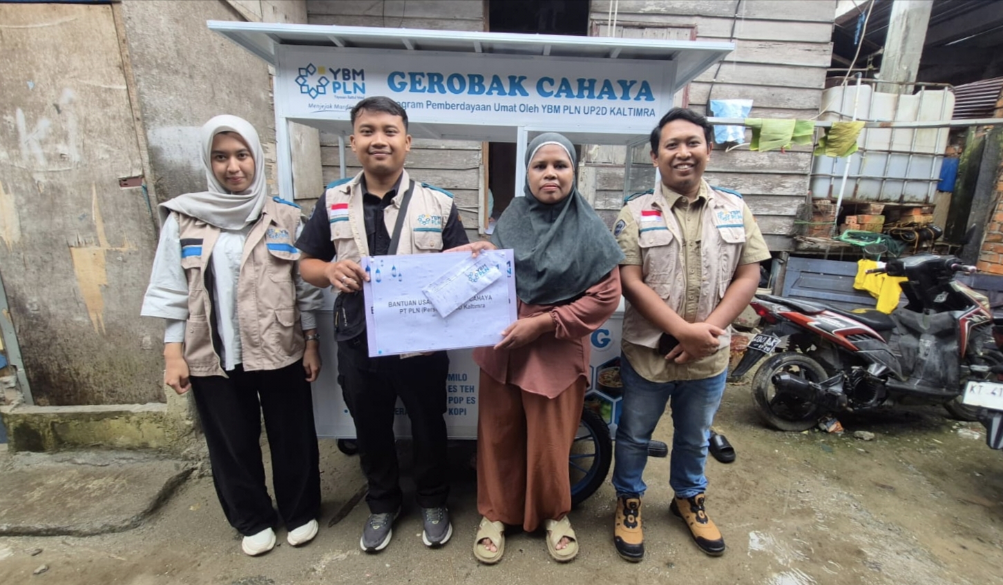 Melalui Unit Pelaksana Pengatur Distribusi (UP2D) Kaltimra, YBM PLN menyerahkan bantuan Gerobak Cahaya kepada salah satu mustahik, Siti Nur Aysah, pada Kamis (19/2/2026).