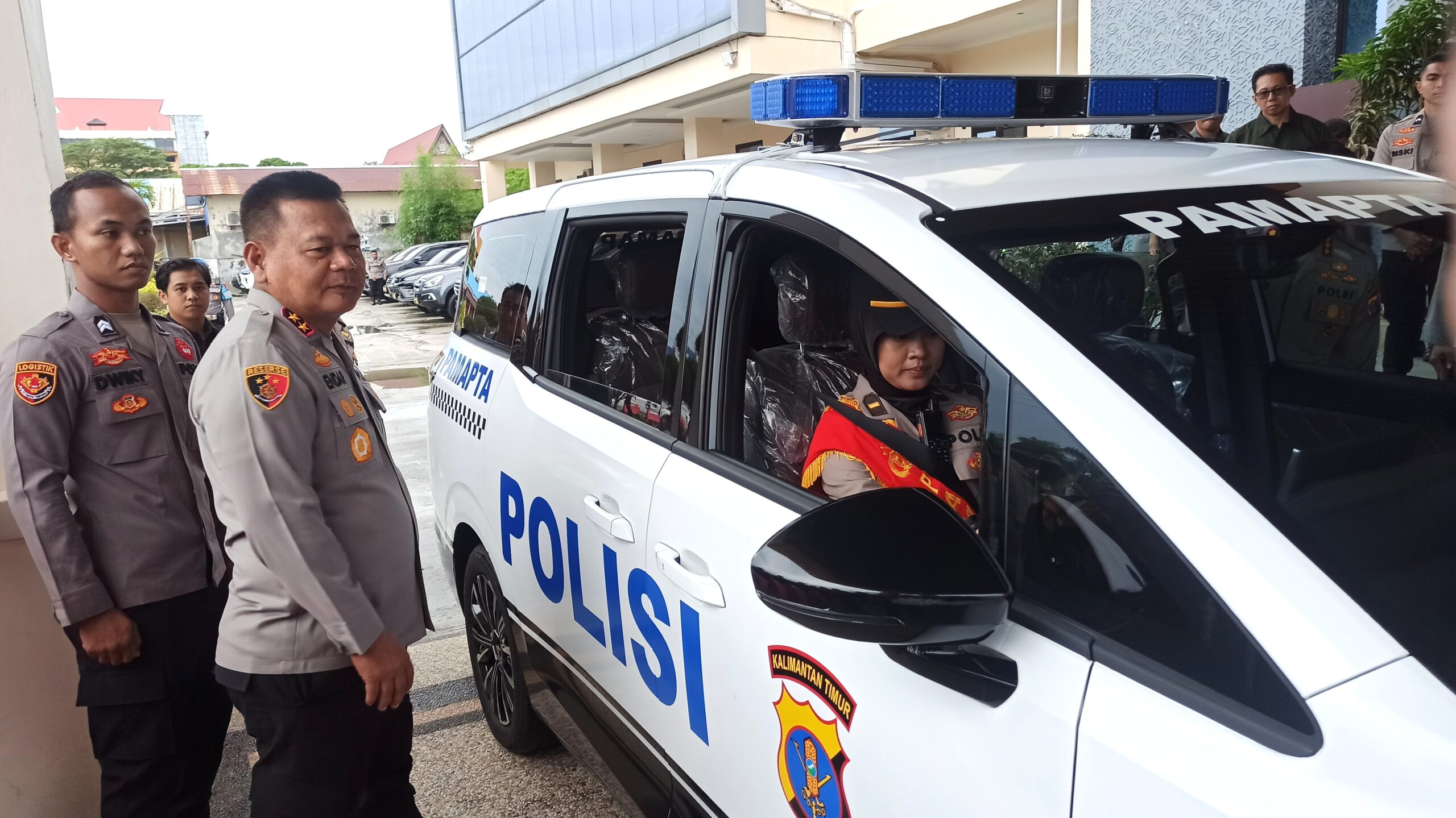 Kendaraan operasional berupa mobil listrik bertuliskan Pamapta tersebut diserahkan langsung oleh Kapolda Kaltim kepada personel Pamapta Polresta Balikpapan. Selain itu, turut diserahkan satu unit handphone dinas sebagai alat komunikasi penunjang tugas.