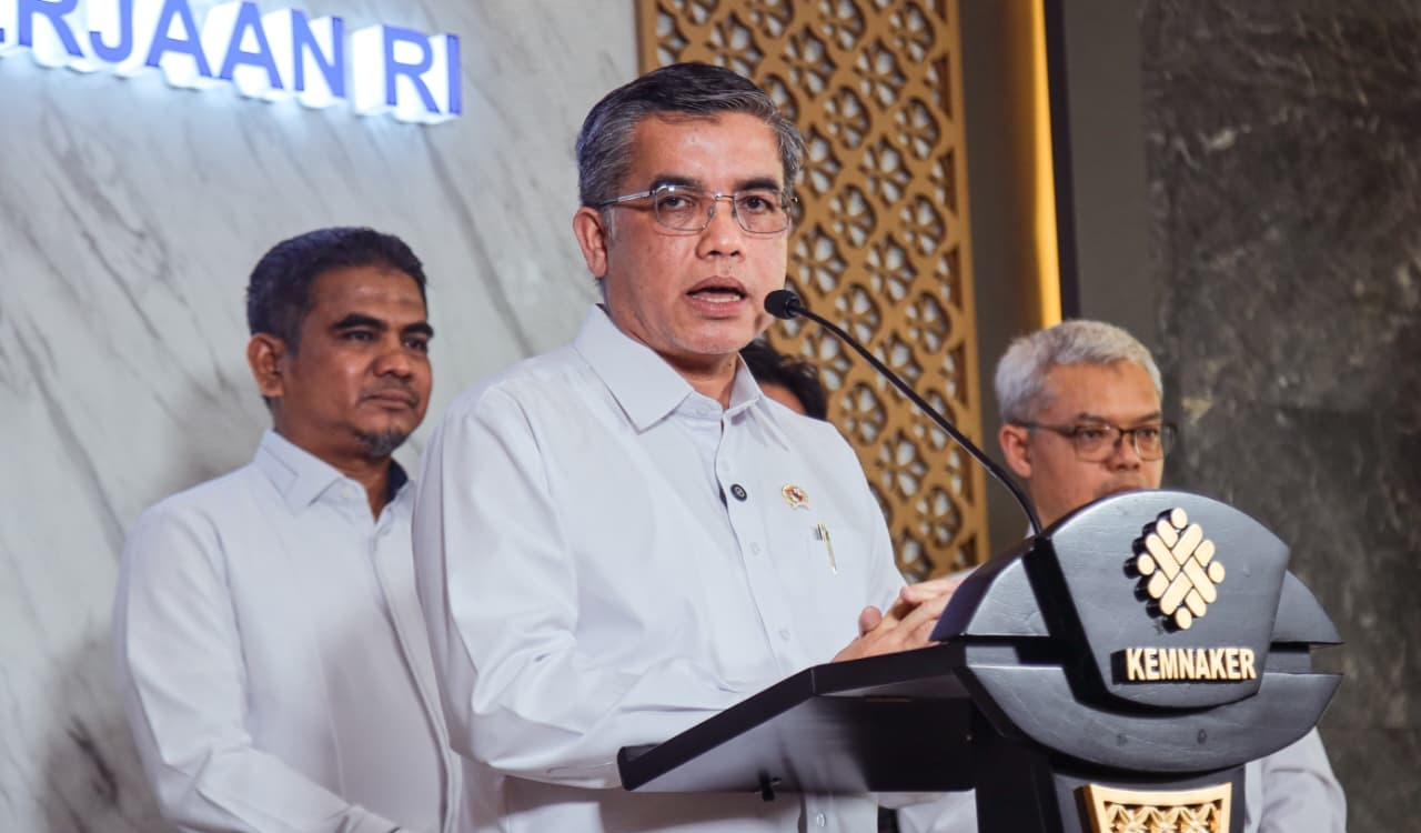 Imbauan tersebut disampaikan dalam konferensi pers di Gedung Kementerian Ketenagakerjaan, Jakarta, Rabu (1/4/2026), yang turut dihadiri Wakil Menteri Ketenagakerjaan, Afriansyah Noor, serta perwakilan LKS Tripnas dari unsur pengusaha dan pekerja.