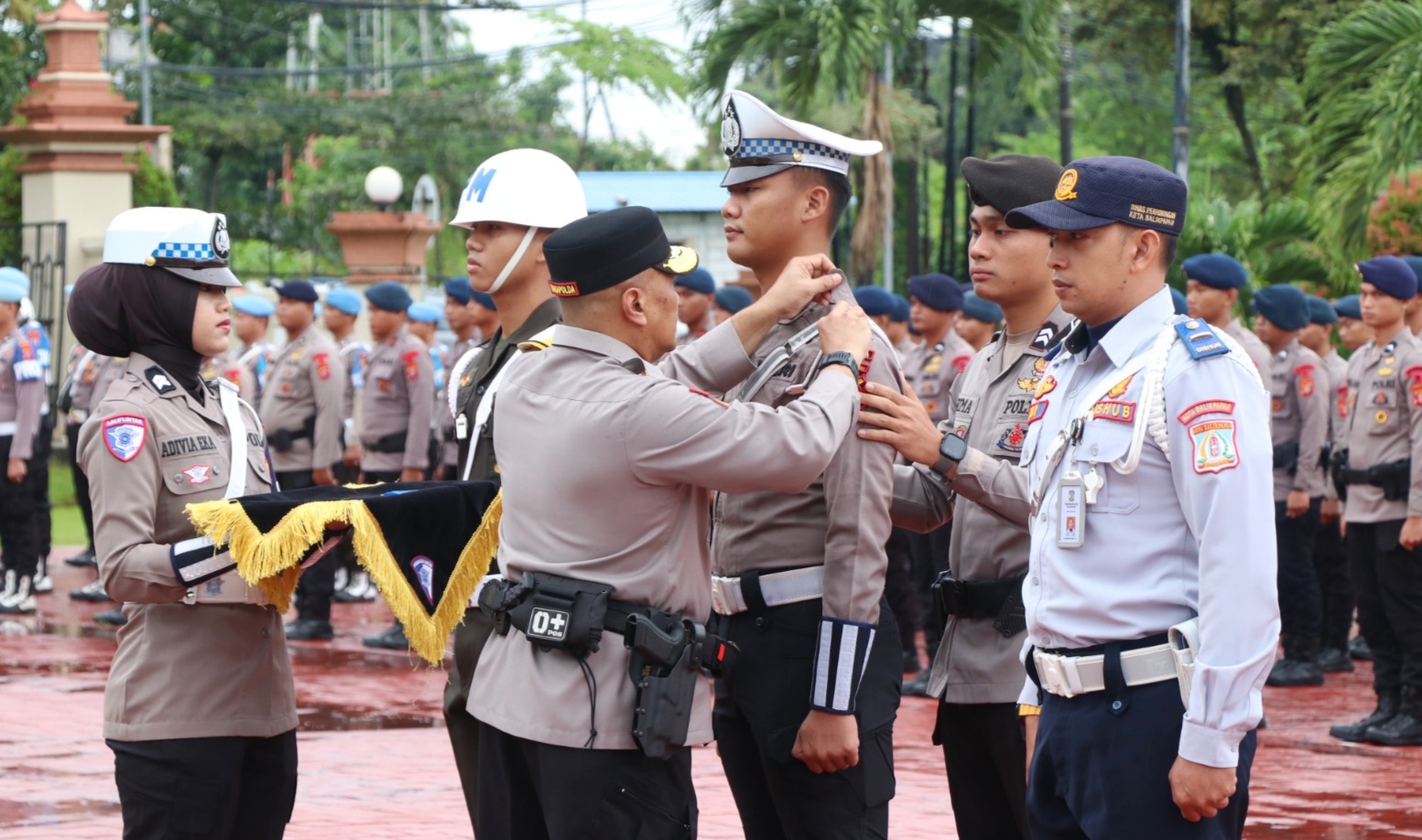 Apel dipimpin langsung oleh Wakapolda Kaltim Brigjen Pol Adrianto Jossy Kusumo, diikuti oleh para Pejabat Utama Polda Kaltim, pimpinan instansi terkait, serta seluruh personel yang terlibat dalam pelaksanaan Operasi Keselamatan Mahakam 2026.