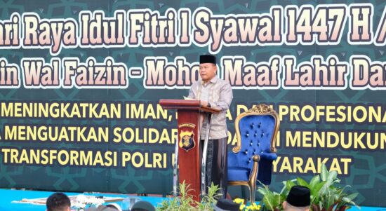 Kabargupas.com, BALIKPAPAN – Salat Idulfitri 1447 Hijriyah juga digelar Kepolisian Daerah Kalimantan Timur (Polda Kaltim) di halaman Mako Polda Kaltim Kolonel Syarifuddin