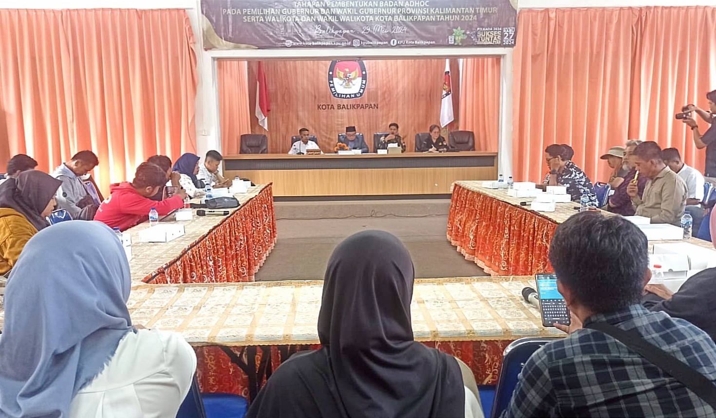 Konferensi pers yang dilaksanakan di aula Kantor KPU Jalan Jenderal Sudirman Balikpapan dipimpin oleh Ketua KPU Balikpapan, Prakoso Yudho Lelono didampingi anggota KPU Kota Balikpapan yakni Suhardi, Makta, sekretaris KPU Balikpapan, Susan Rumate serta puluhan wartawan Balikpapan.